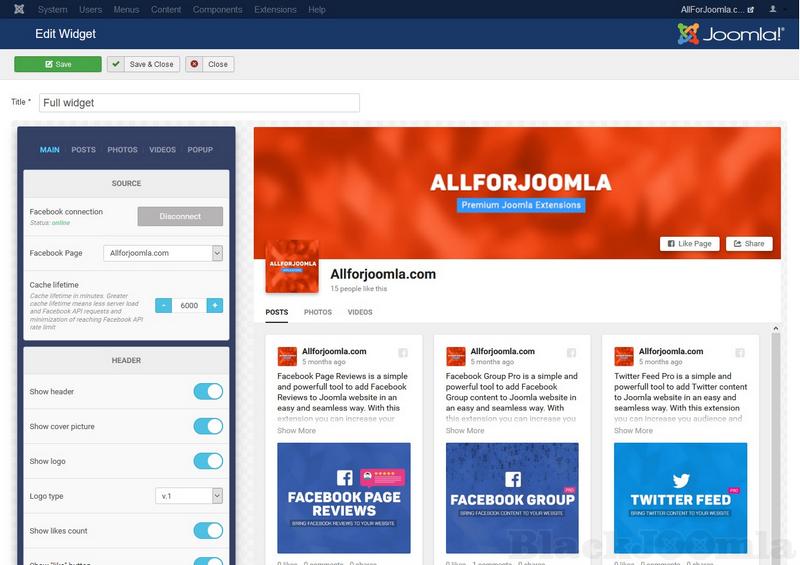 The smartest business owners integrate Facebook into their business websites in order to take full advantage of all of the social media benefits provided by Facebook. Make the right choice, download Facebook Feed Pro for your website. Facebook Feed Pro is a customizable Facebook widget that can easily display your Facebook page content (Facebook posts, Facebook photos and Facebook videos) directly on any Joomla website. Allow website visitors to view Facebook posts likes, Facebook shares, Facebook cover photos, without having to leave your site. Download and install Facebook Feed Pro today.