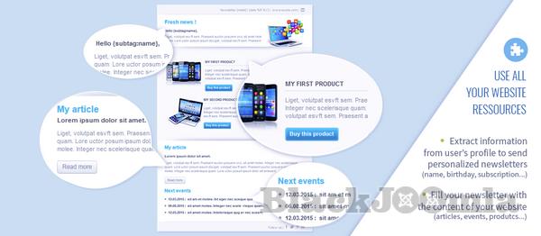 - Easily include Joomla blog Articles and any user information in your newsletters with dynamic text (like birthday, user data, time, name, e-mail, a custom field…).