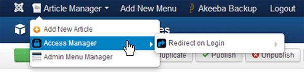 - the Joomla admin menu