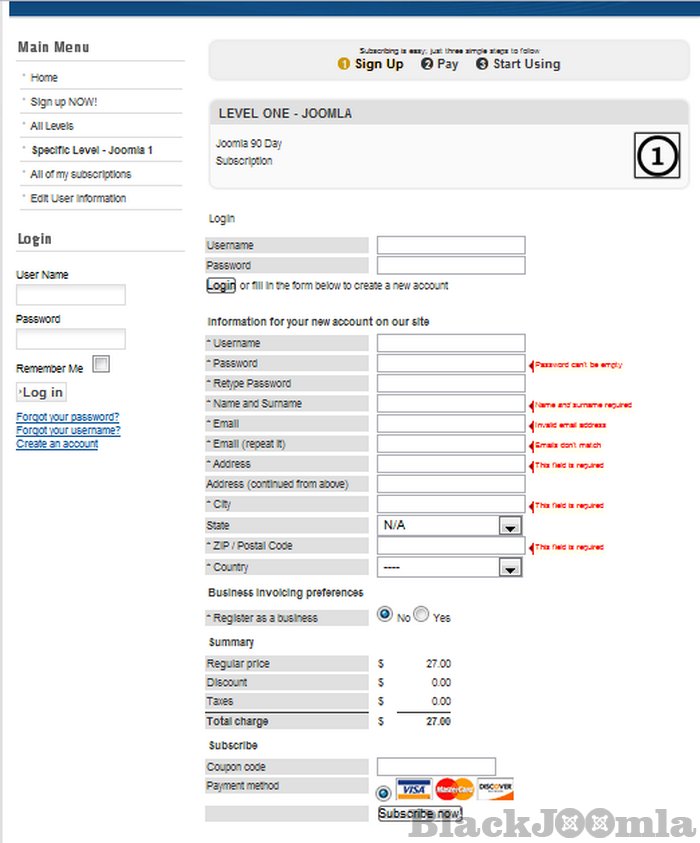 - Assign subscribers to selected Joomla groups when they sign up for a subscription plan.