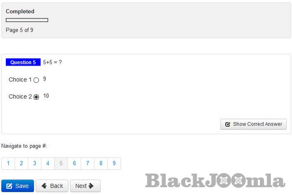 • supports AJAX making the component more fast and powerful. AJAX technology lets user to pass test without page reloads - component will update all the page stuff itself