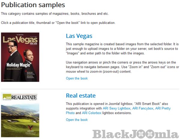 - Books can be opened in a lightbox. Supports integration with several popular lightbox extensions inlcuding lightbox plugins from "ARI Smart Content" extension