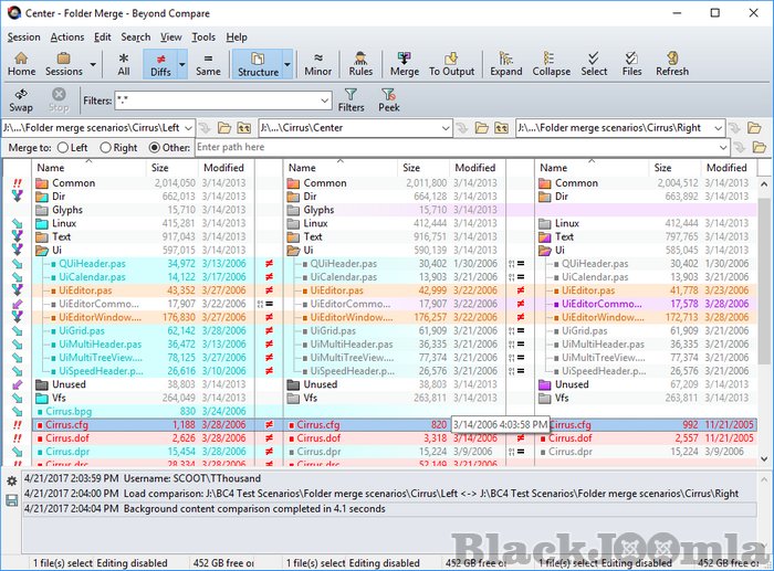 Three-way merging now extends to folders. Compare independent changes against a common ancestor to quickly merge your changes with someone else's. It makes merging your customizations into a new release a snap.