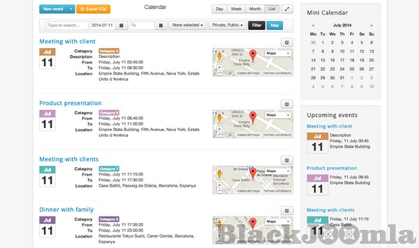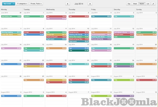 Create and share events with your users using beautiful calendar views in Joomla. Either to plan your own private schedule, or to share public calendar events that your users can see in your site, Calendar Planner is the best Event Management tool for Joomla! and the most intuitive and easy to use, thanks to its brilliant, JavaScript and Bootstrap powered User Interface, and its AJAX connection to the server for non-intrusive, smooth navigation for your users.