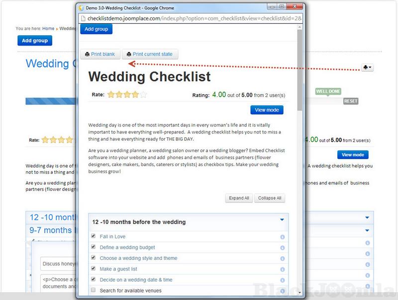 There are a number of tools that make it fast and simple to work with checklists. You can add useful information as a description before and after a checklist. The tagging system allows checklist categorizing and simplifies the search process. Checklists are available for printing and converting to PDF files. You can embed any checklist into the Joomla article or integrate it with third-party extensions.