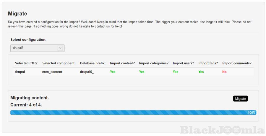 - Content parsing - cleans up wordpress/drupal code that is not used in joomla. Moves images to your images folder
