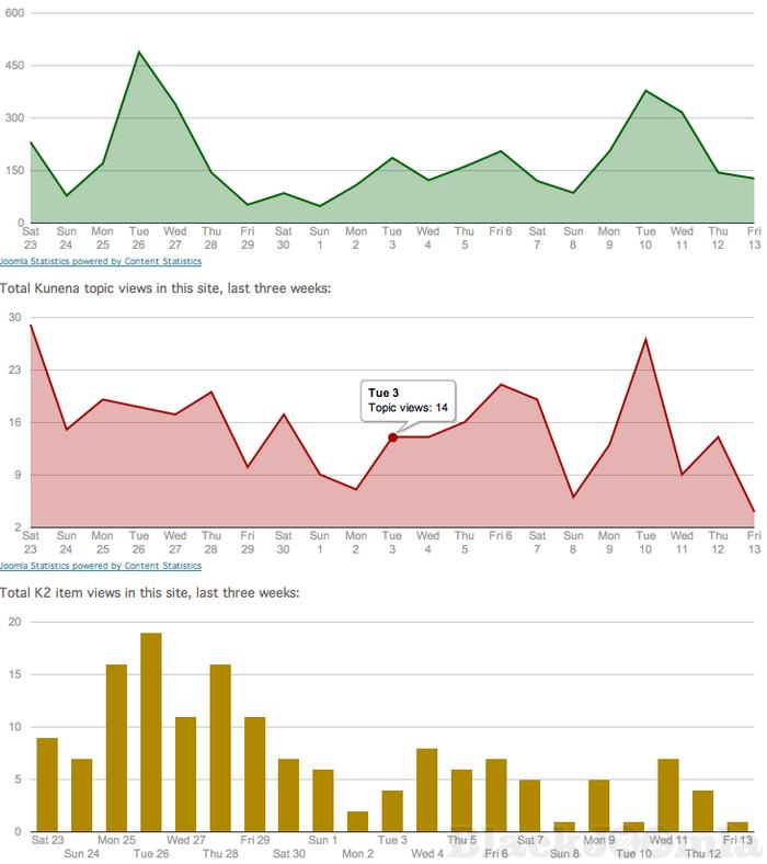 Show popularity rankings and content evolution reports using the ultra configurable modules served with it. Know how many people sees your Joomla articles, K2 items, Community Builder profiles, JomSocial pages, track DOCman document downloads, VirtueMart item sales along the week, months and years. The definitive Graphic Statistics and Rankings system for Joomla offers you all you need to complete your site with beautiful Google Charts reports of your stats. Its high versatile plugin system makes this extension integrate perfectly with every area of your site, without needing to worry about your component updates