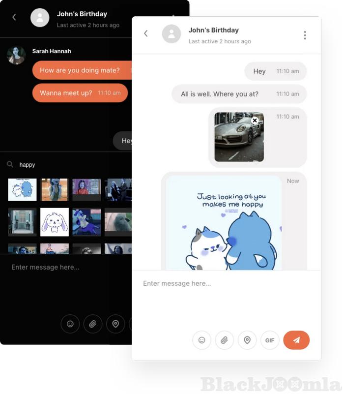 Quickly share images from Giphy with the built-in Giphy support.