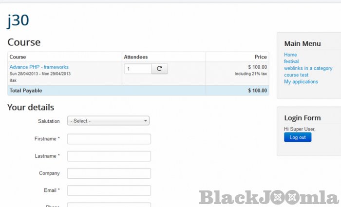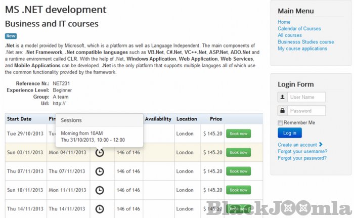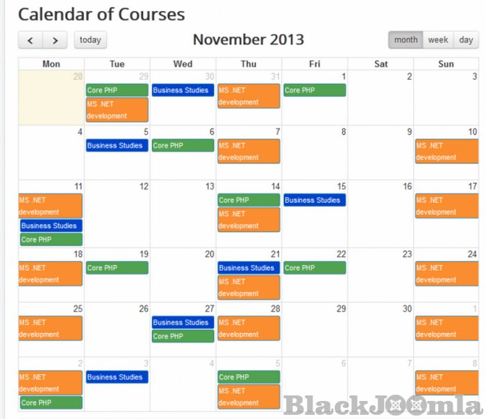 Course Manager is the only course listing component for Joomla! that allows you to run a directory of courses, classes or other events on your website with advanced booking forms, tags, PayPal integration, Search Engine Friendly URLs and much more. Fast, Simple and very Flexible.