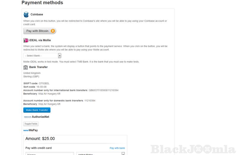 Funding goes through several steps and it is controlled by "Payment Wizard". It is possible to transfer money through PayPal, Blockchain, Coinbase ( Bitcoin ), Bank Transfer, iDEAL via Mollie, AuthorizeNet, WePay, Stripe,...