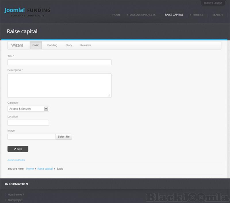 Users are able to publish their projects on the front page. They will use a Wizard, which will lead them step by step through the process and will facilitate the creating of their projects.