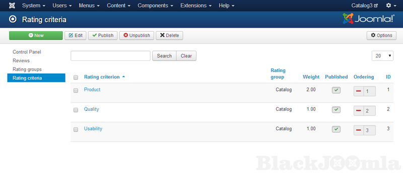 The weight will be used later to calculate the overall rating. So, the website’s users will be able to write reviews, rate content (including DJ-Classifieds ads, DJ-Catalog listings, and J2Store products).