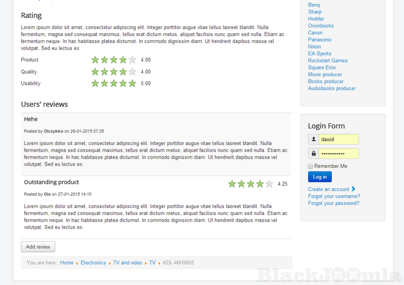 The rating and reviews extension is integrated with Joomla Articles, DJ-Classifieds (ads and users), J2Store products, and DJ-Catalog2 products.
