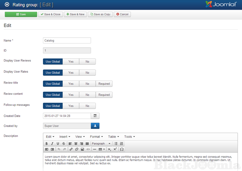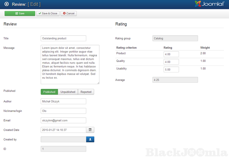 DJ Reviews is a commercial rating and reviews extension for Joomla. It gives the user the possibility to expand articles with reviews and ratings (comments features). You can create own rating criteria for different content types and set each of them's importance.