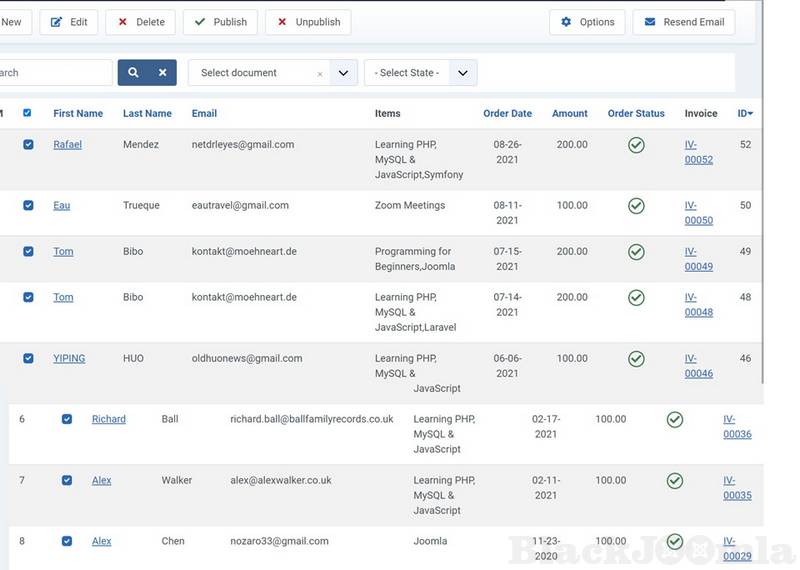 7. Orders management : You can manage orders from back-end, assign an order to a user, export orders into csv format.