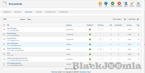 EDocman Documents Category plugin allows display all documents of a category in a Joomla article.