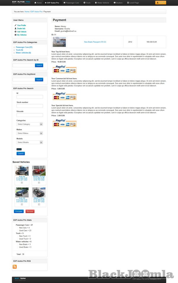 The component uses an unlimited amount of Group Users, for every Group You can choose your own settings therefore you are able to set the Group settings that are most suitable for You. For every Category You can choose a set of fields which will be used for the particular Category, that will give the ability to sell vehicles starting from Cars, Trucks, Water transport to Bicycles.