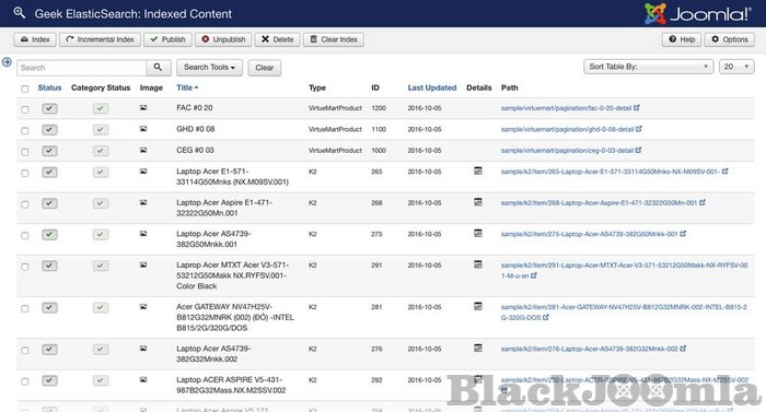 The component comes with two plugins with functions of trigger during the content creation process of Joomla components and immediately update the ElasticSearch index.