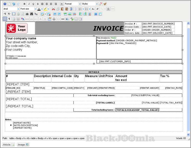 The invoices but also other document can be customized to include all European mandatory information such as the European tax note information relative to the VAT law and articles that justify the application of specific computation.