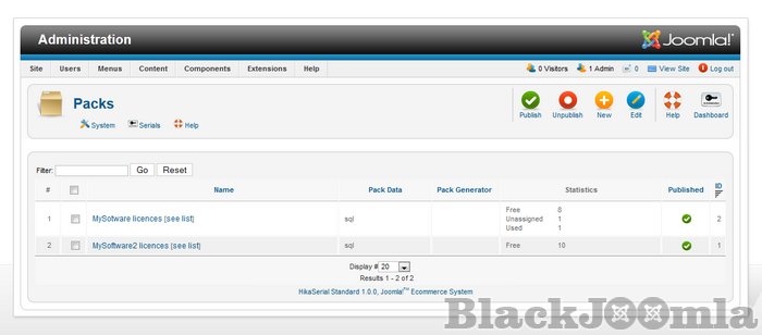 - Create, modify and assign your serial packs to your HikaShop products