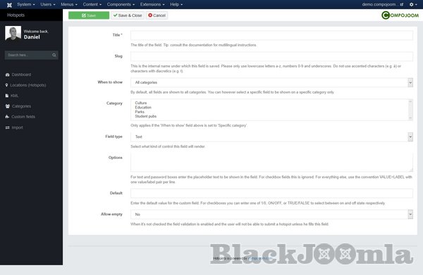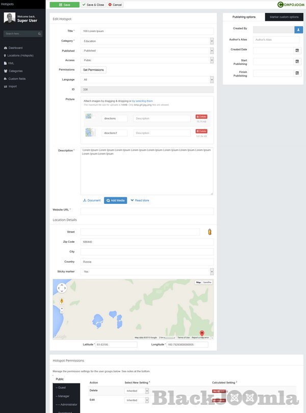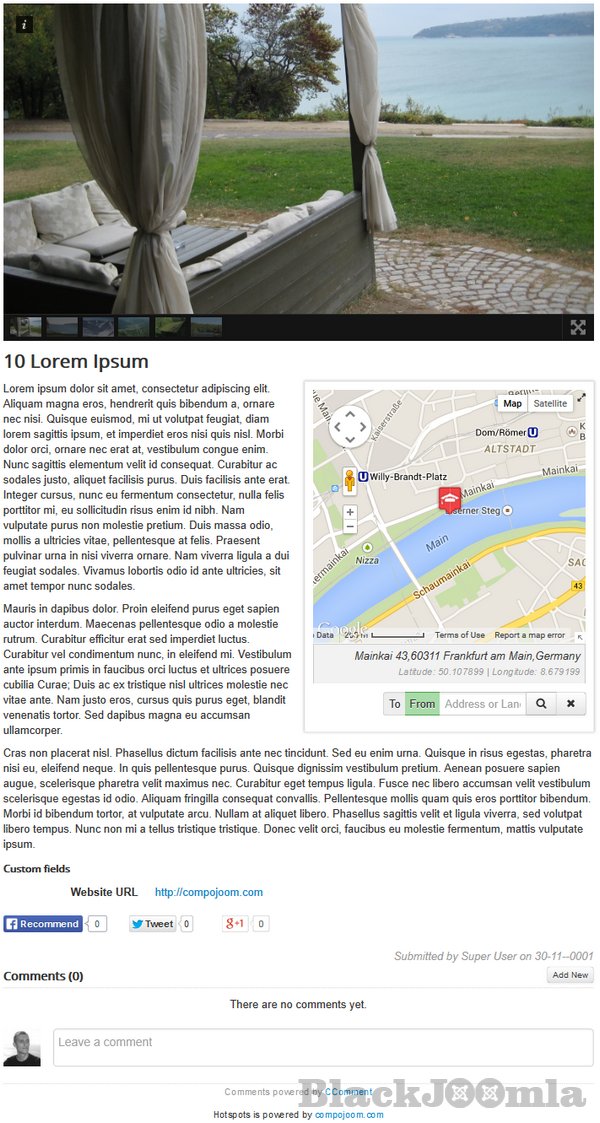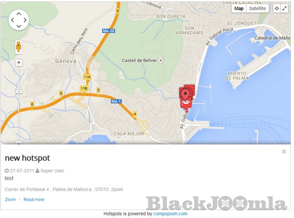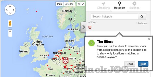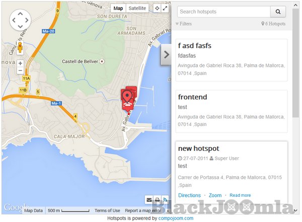 Hotspots is a highly configurable Google Maps marker manager released for Joomla! developed by compojoom. HotSpots supports multiple & nested categories with different icons for your locations (markers). How do you know if HotSpots is good for you. Visit our demo and see the flexibility how to show multiple locations for your office, or many locations for your directory for your city site. See how you can bring your site to the next level.