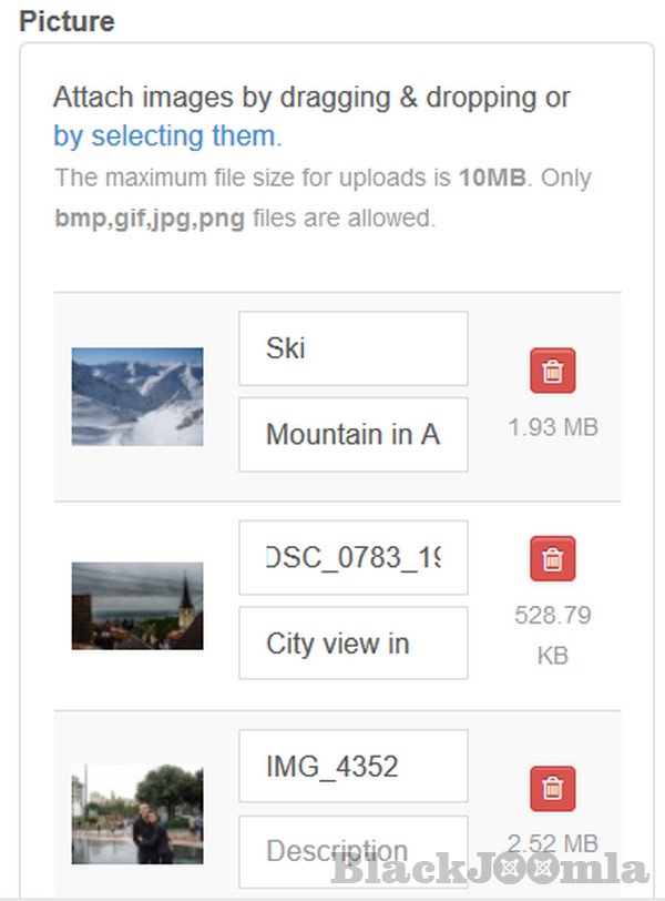 - Each marker has an individual description, this can be added with or without a picture (each marker can have custom icon & link to com_content, k2, sobiPro)