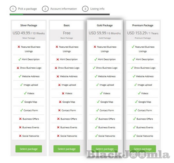 * powerful, flexible directory payment plans: create multiple plans, with the possibility to customize the included features.