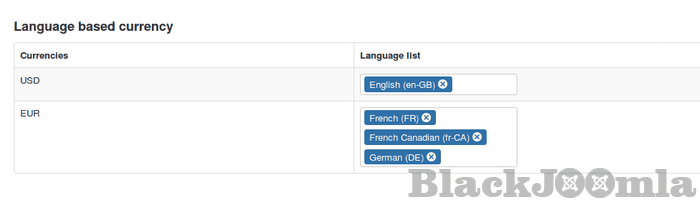 The app allows you to choose currencies that will be available for languages on the site. You could assign as many currencies for a language.