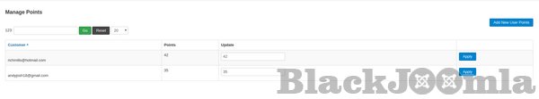 Manage points earned by the customers at the backend. View the points earned by each user using the manage points option. Add points for users using the add user points option.