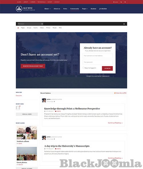 JA Alumni template fully supports EasySocial component with customized style to build community page.