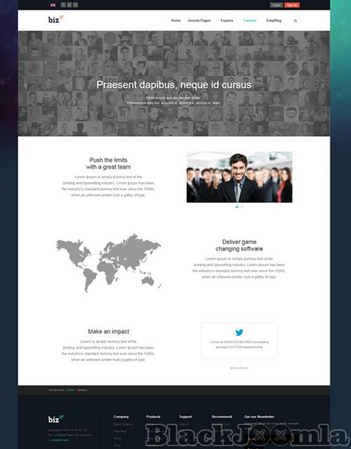 A Biz is built on the robust T3 Framework with Bootstrap 3 at core, supports RTL language layout at default and support for the powerful EasyBlog component, and the cool Joomla extension for map & location - JA Image Hotspot module.