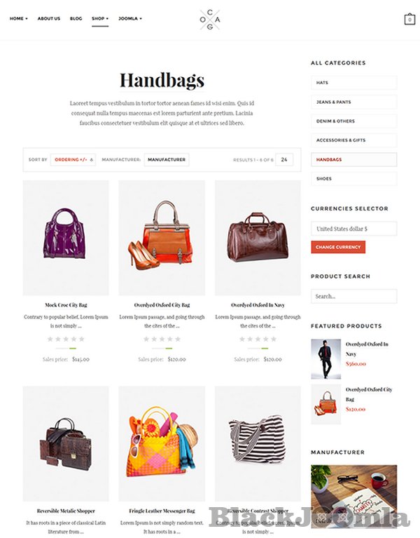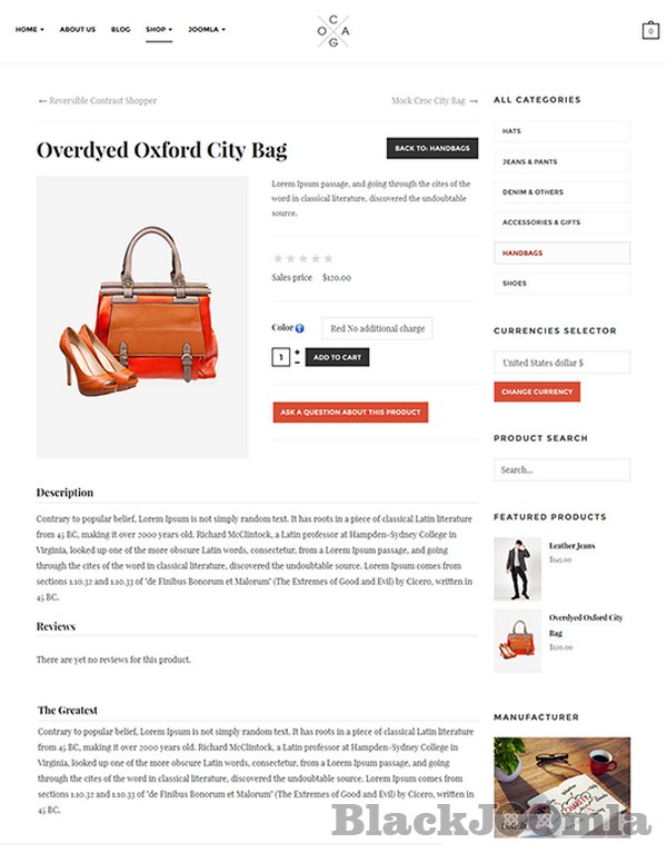 JA Cagox together with PayCart & VirtueMart to build a complete online shopping experience for every fashion store, all the superb features: product details, rating and pricing, shopping cart animation and so on.