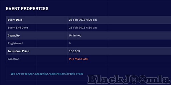 JA Conf event system supports both Joomla default article with additional fields and event booking based on Events Booking component.