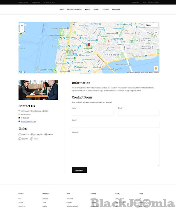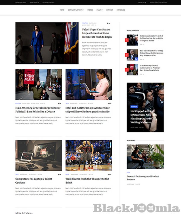 The news Joomla template comes with multiple content categories: Featured, Category, Video to display content in well structure.