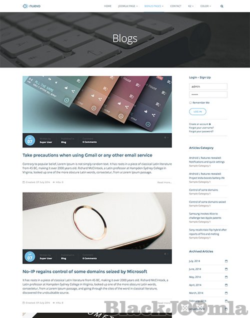 Blogging with K2 component in Joomla is one of the best combinations. Your way to the blogging world with JA Nuevo and K2 component is fast and easy.