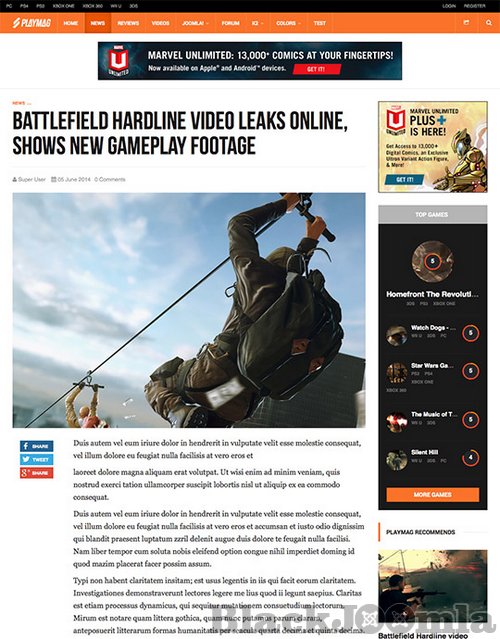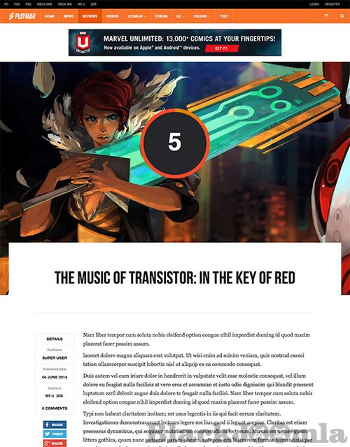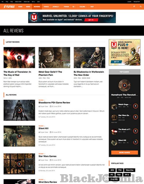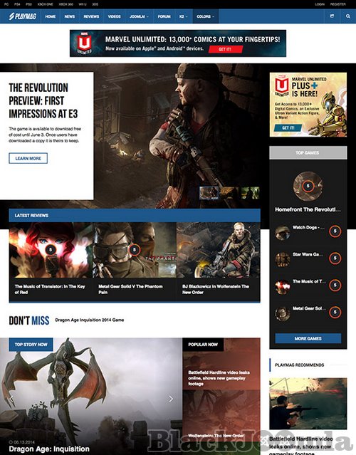 One of the great feature of this Joomla template is the game review page, together with scores and rating system. JA Playmag will surely capture the attention of your readers with dark tone and bold design, stunning headlines and texts, along with the gaming spirit.