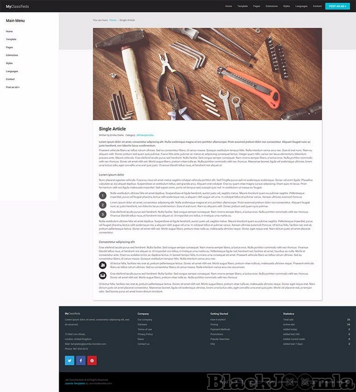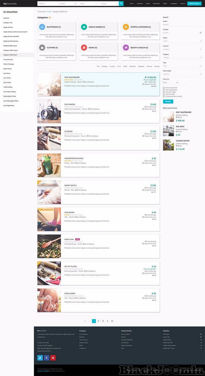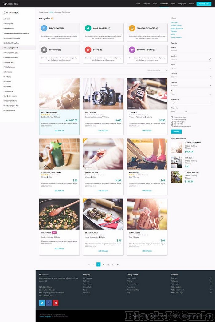The template is packed with several top notch Joomla classifieds extensions that work together forming a complete platform for a classifieds website, auction portal or companies and products directory. One of them is DJ-Classifieds, the most popular classifieds extension for Joomla that allows you to charge advertisers in many different ways: for posting in paid categories, for promoting ads, for extra images, for extra characters in description and much more!