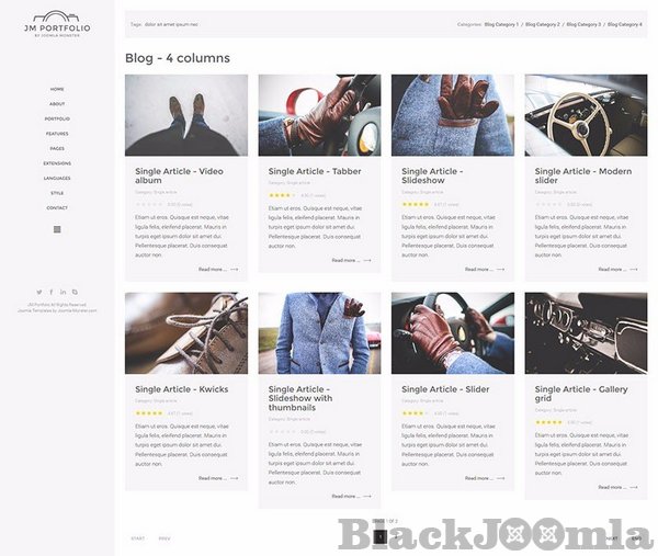 Online portfolio Joomla template would be worthless without a personal blog where you can write something more about your projects. Keeping this in mind we prepared a single and multi-column blog layouts and it is only your choice which layout you will use for articles.