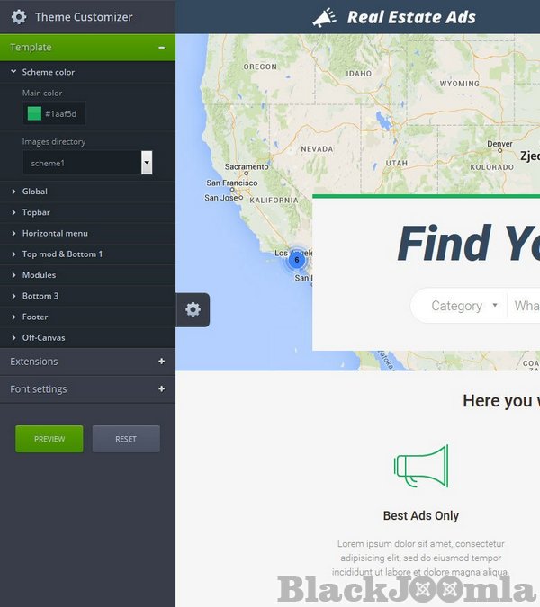 The demo site of this template presents ads listings from the US but this is the example only - you can create classifieds site with items from all over the World by creating any scenario you need for example (continent-country-city) or choosing "Use my location" option.