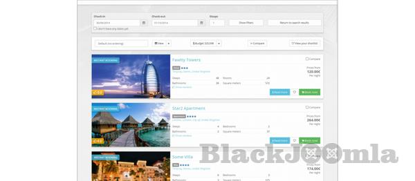 - Elegant Property List. Shows multiple views including List and Photo views, plus various sorting features and when a guest sets a budget then properties outside that budget are de-emphasised. Offers both infinite scrolling or paging to show search results.