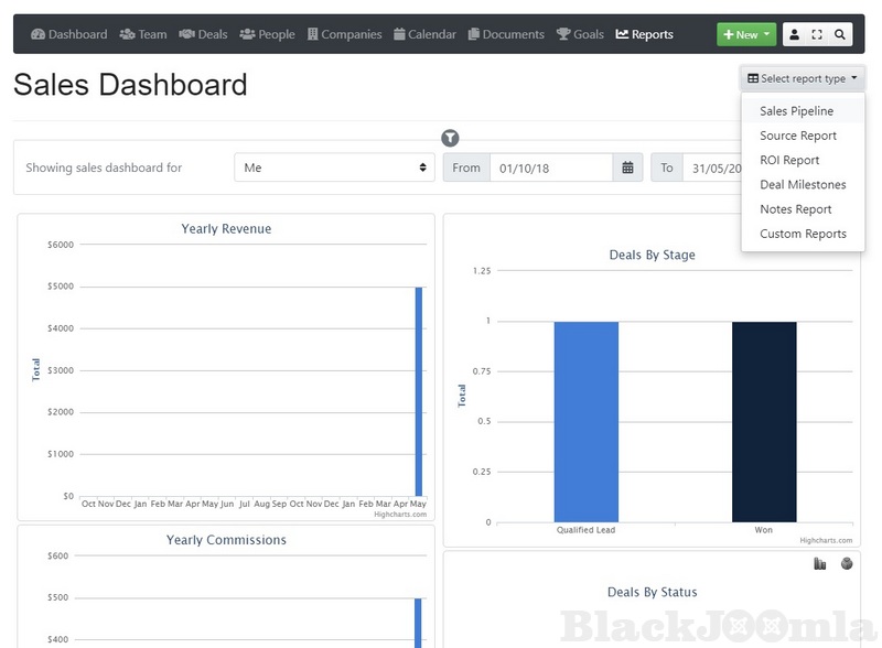 - JoomCRM has several common reports already added which can be run with a single click. Save your own custom reports for easy reuse.