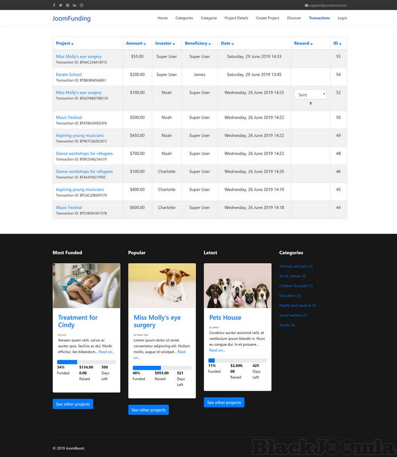 - Additional information and statistics to project owners about their campaigns in frontend