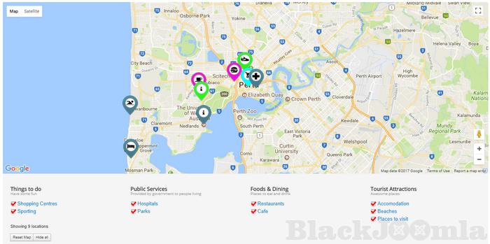 - Searching of locations using standard Joomla search functionality