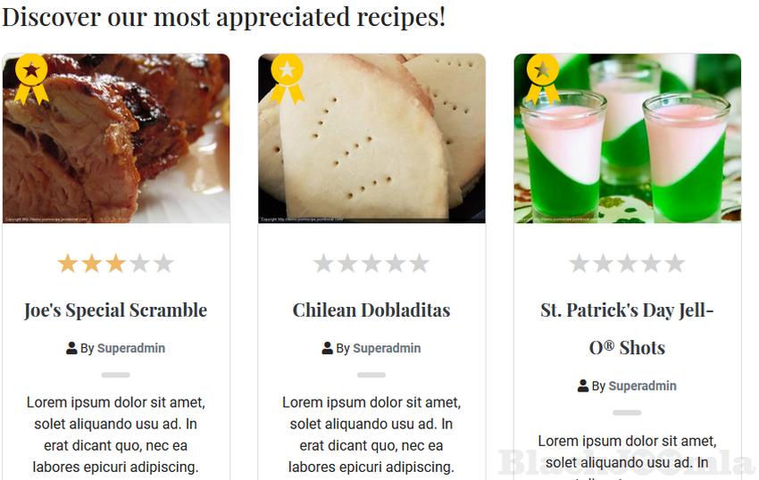 - Gallery Module, define which recipes to put in image slider (latest, most viewed, best rated, etc)