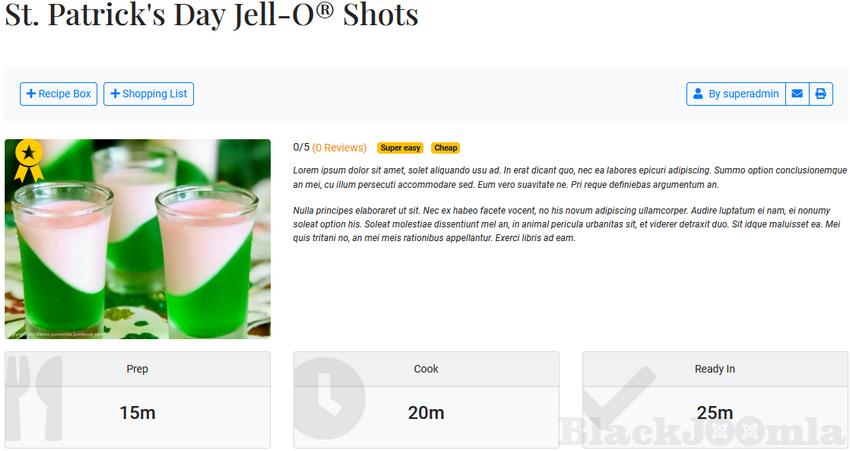 - Content Plugin, display recipes in your Joomla articles using easily using shortcode.