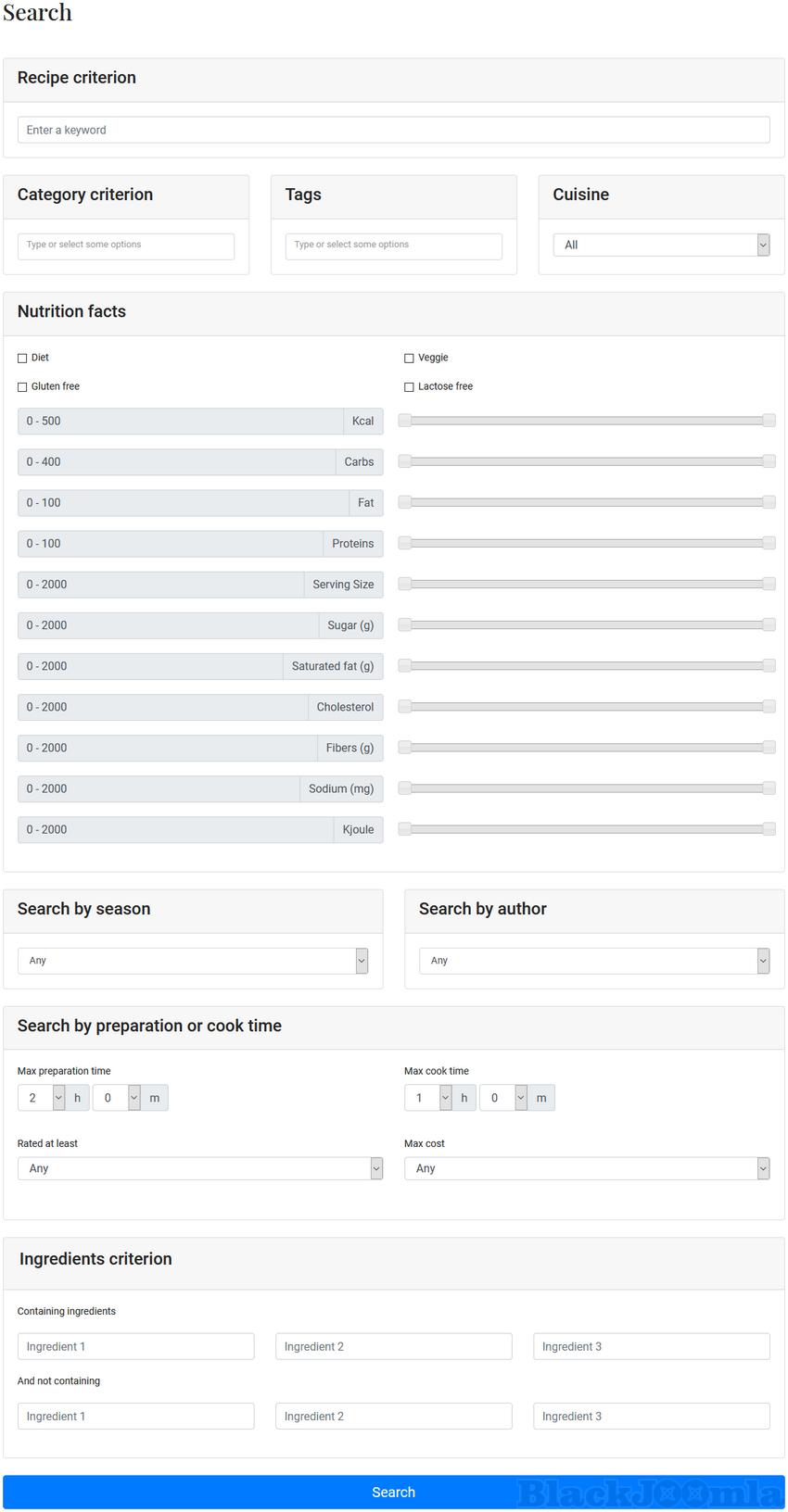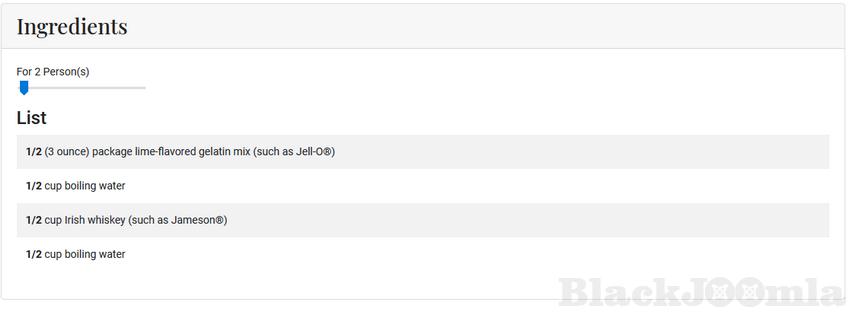 - Nutrition Facts, Kcals, carbs, salt, proteins... JoomRecipe is also perfect for diet websites
