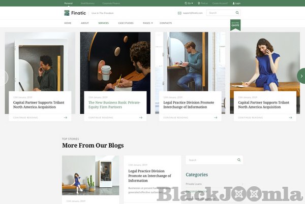Blogging is a great way to keep interested visitors informed. Finatic finance Joomla template makes it convenient with a modern blog packed inside.