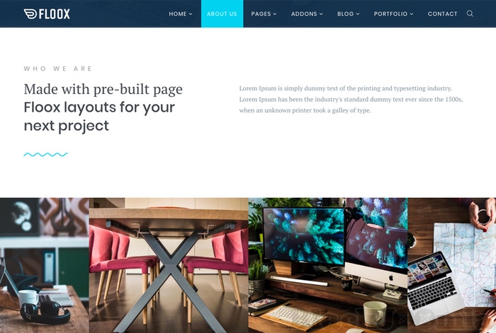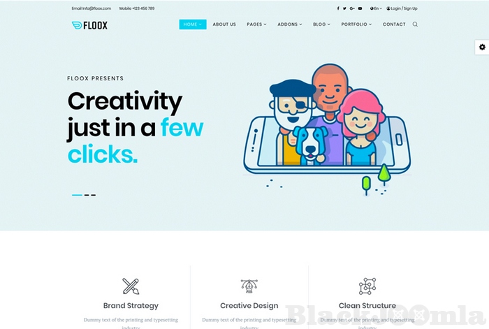Floox has five different homepage layouts, two blog designs, three header variations and unlimited colors that give so much flexibility to the developers.