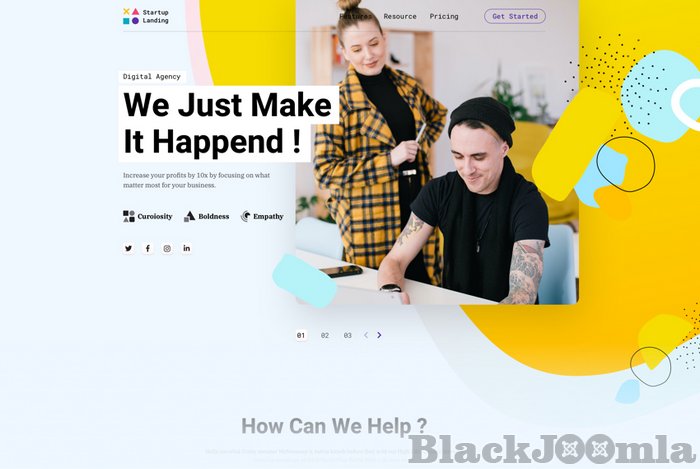 Startup Landing is built using SP Page Builder Pro. It crafts designs brings unique interactions, enhances the presentation, and adds powerful animation effects to the content. This template utilizes Helix Ultimate, the most popular template framework on Joomla.