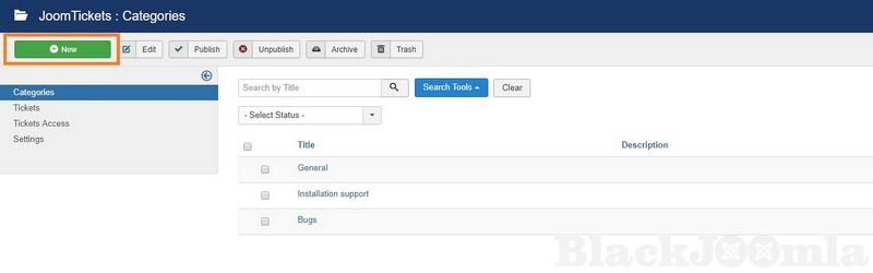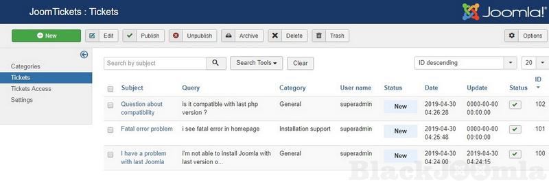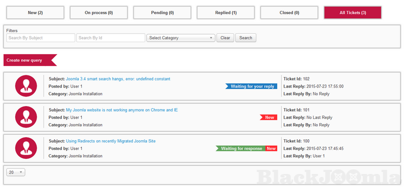 - Filters for tickets by subject, id, category and status.